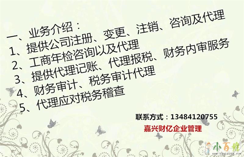 嘉兴嘉善公司注册、注册公司、代办执照、代理记账小百姓网www.xbaixing.com年检年报